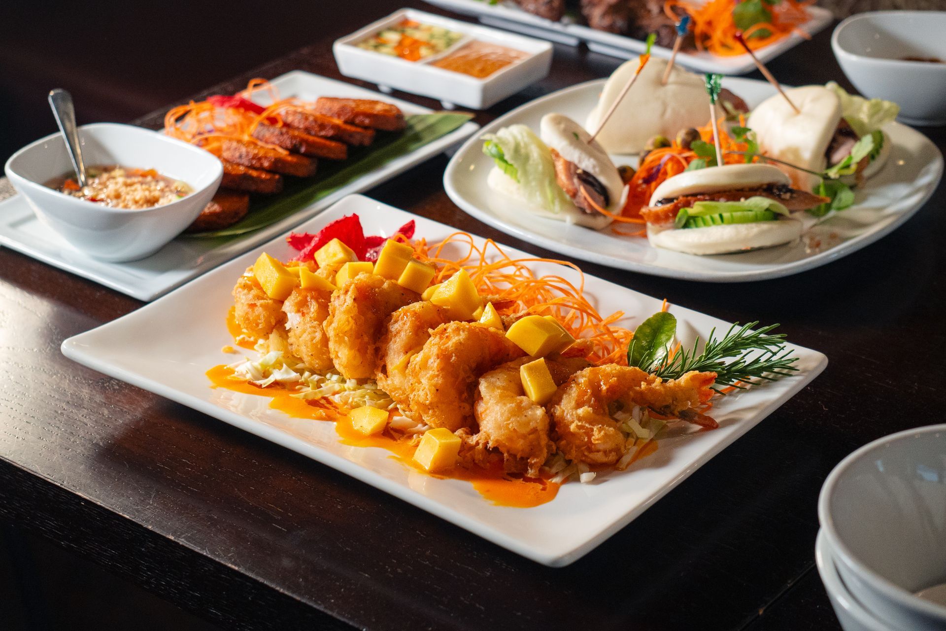Shrimp in herb marinade wrapped in wonton skins, served with house plum sauce.